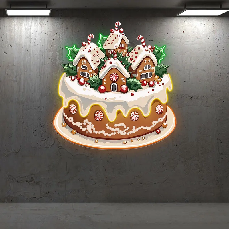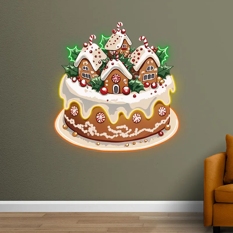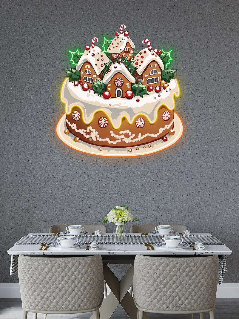 Christmas Little Houses Cake Neon Sign, Creative Wall Hanging Neon Light, Whimsical Christmas Decor Light Full Of Ritual
