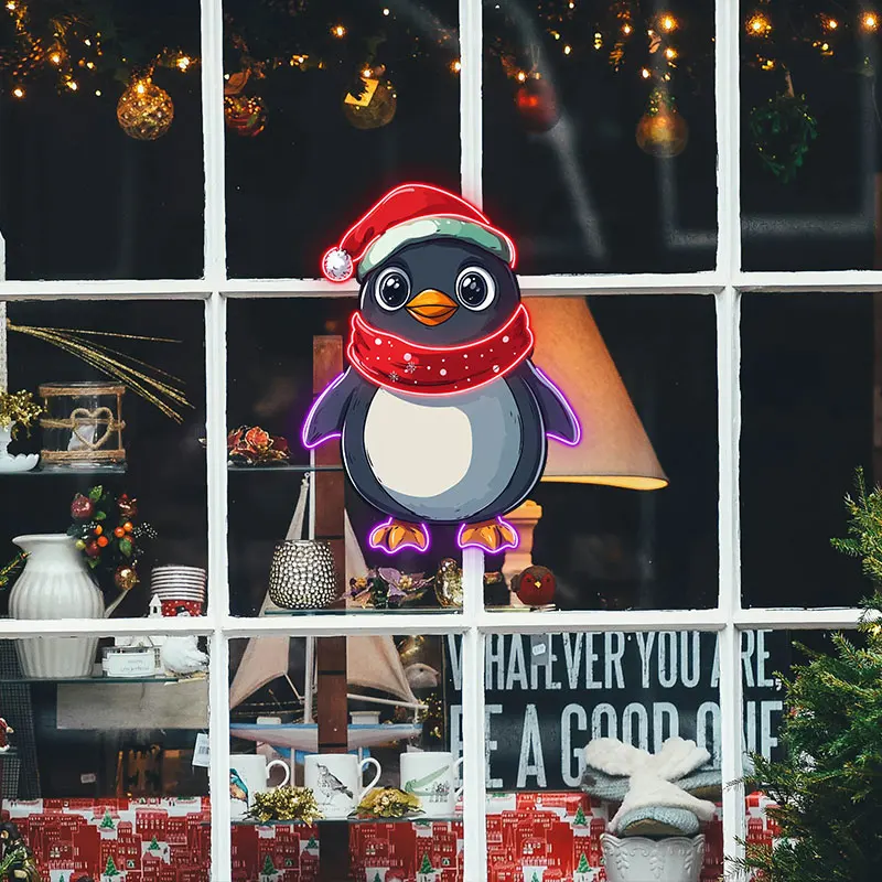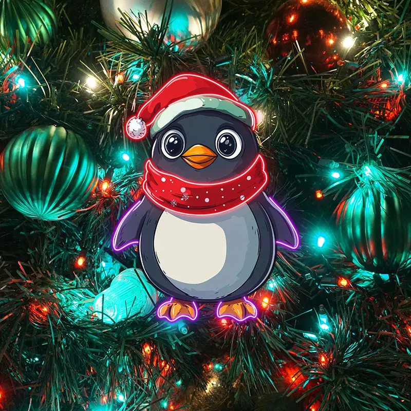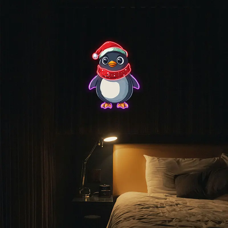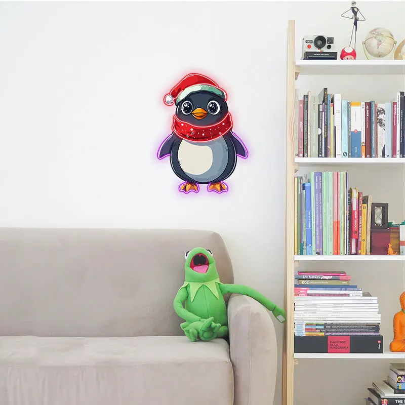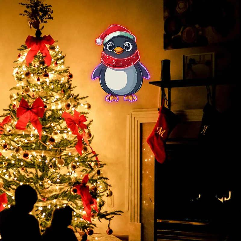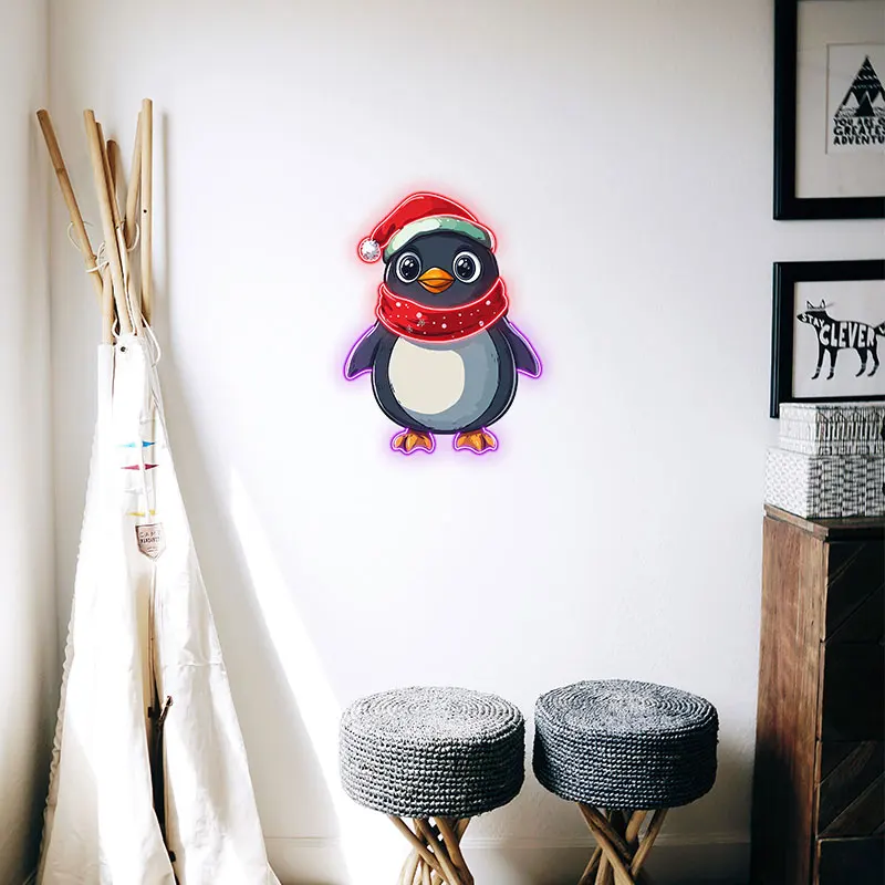 Christmas Penguin Neon Light - Adorable LED Light Decor for Holiday Parties, Kids' Rooms or Xmas Gifts | Festive Home Decoration