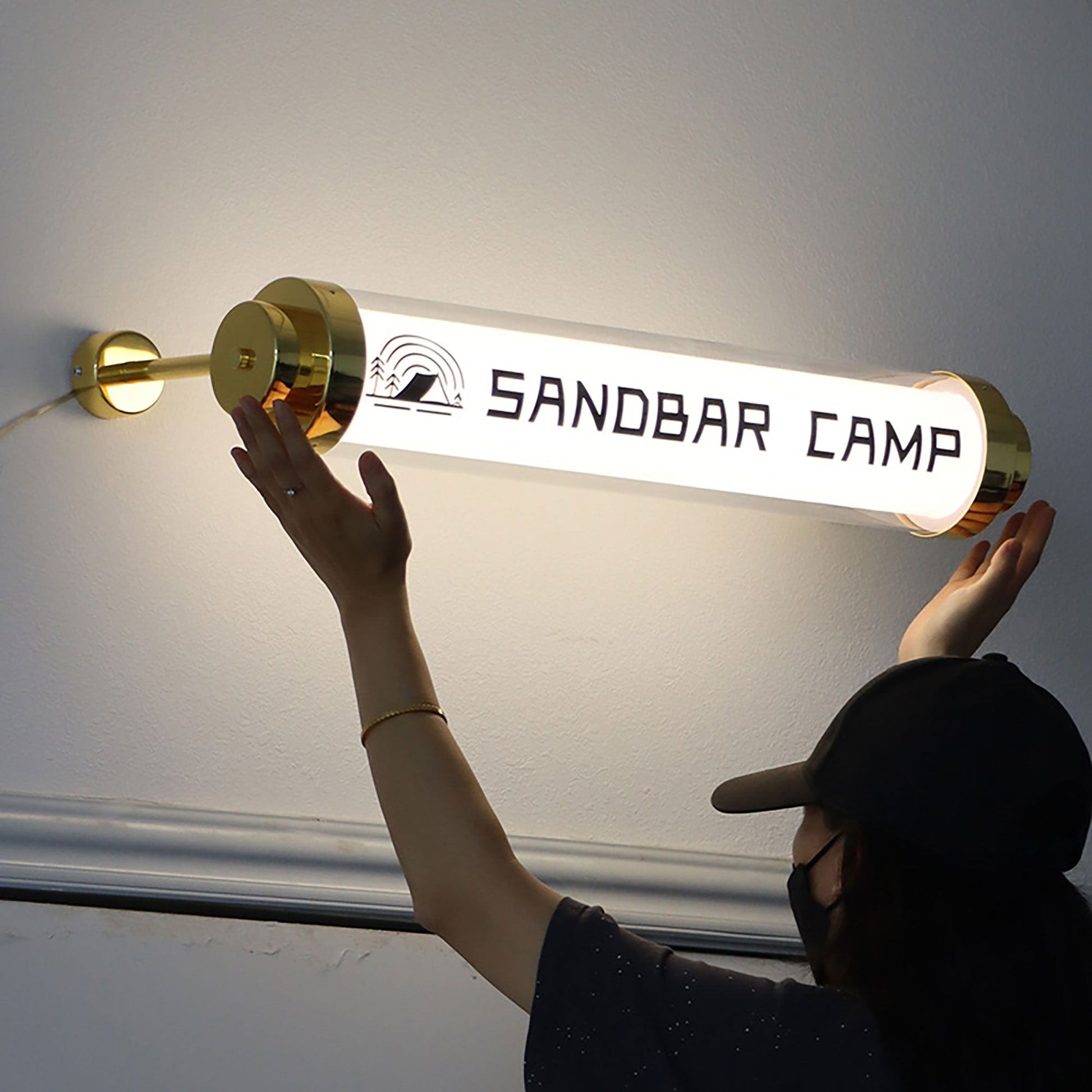 Round tube lightboxes are essential signs in commercial areas such as restaurants, coffee shops, etc. They are usually installed inside the shop and when you light it up, they are eye-catching enough. You can print text on acrylic to clearly display various functional areas to people, such as ordering and dining areas. In addition, you can also install this logo at the entrance of the store, and the store name or brand information will be displayed on the lightbox. Passengers can easily be attracted by this special design and know more about your business.