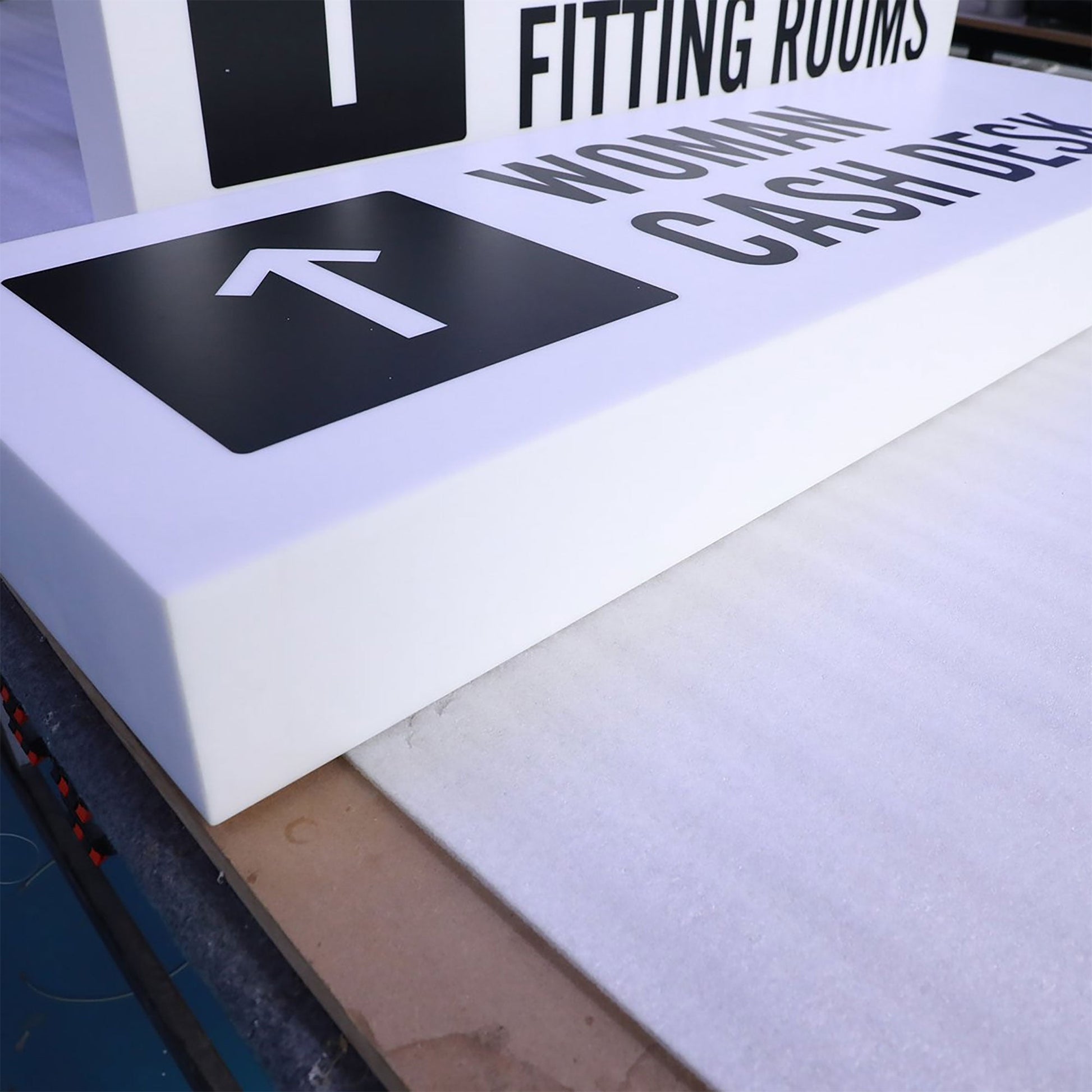 They have five face panels and one side PVC back panel with pre-drilled holes for wall mounted. Logos are custom printed on or applied to the surface. Storefront light box is cost-effective compare with led channel letter signs. We offer small and large acrylic light boxes for indoor and outdoor business.