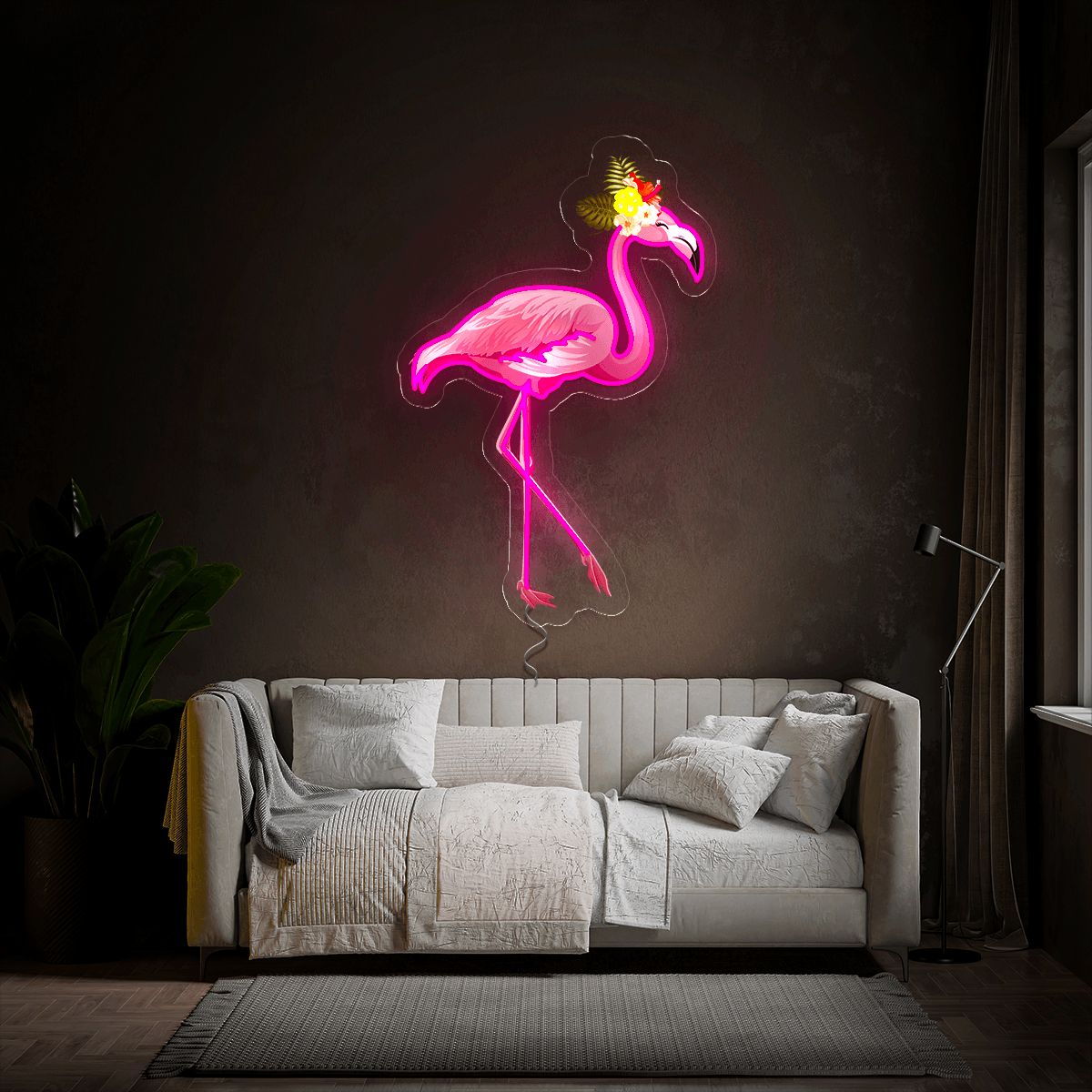 Cute Flamingo Artwork Neon Sign