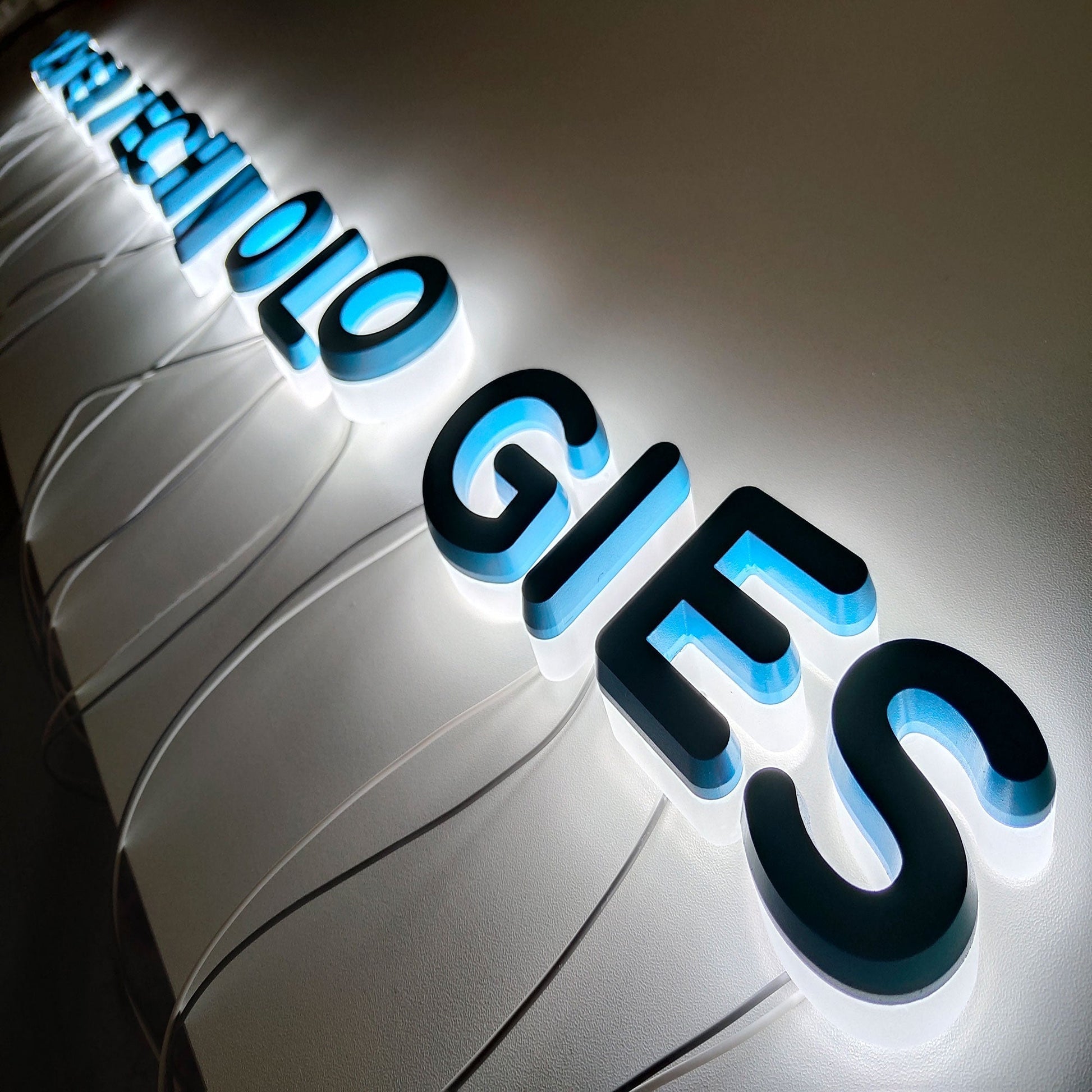 LED backlit signs work well both indoors & outdoors, whether day or night, the excellent halo effect makes your sign always be the focus, fit for business, building and home. The amazing halo effect would make the 3D metal signs appear to be “floating” on the wall, it’s so special, beautiful and eye-catching. It includes backlit metal channel sign / LED reverse channel sign and backlit acrylic letters sign which are also called as LED halo lit signs. it’s individual and 3D, only the back-panel is lighted. It is one of the most common LED illuminated signs, be widely used exterior and interior, include: