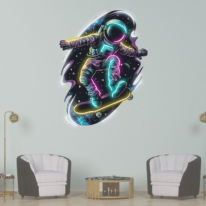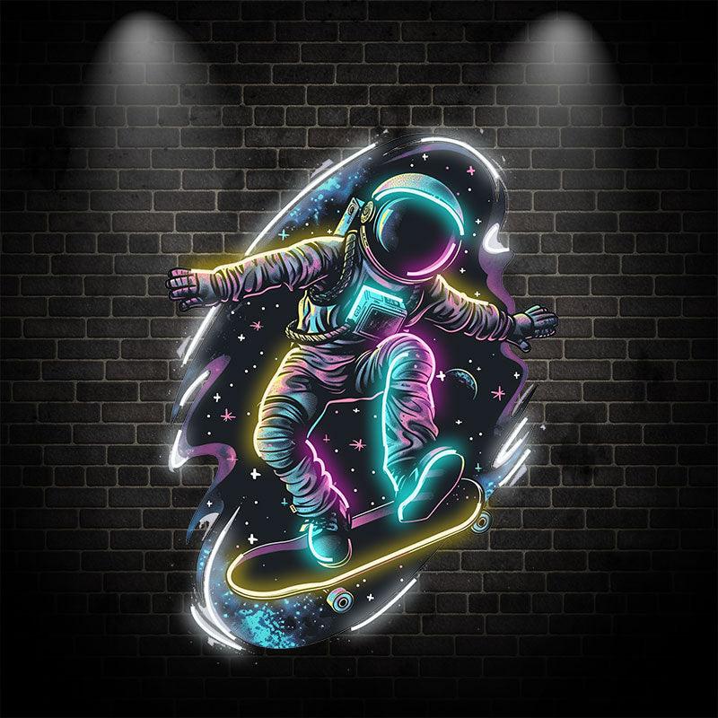 Interstellar Skateboarding neon signs: The Extreme Adventure of an Astronaut Traveling Through the Stars