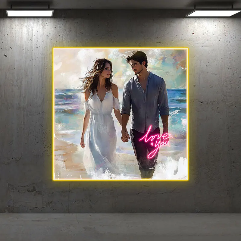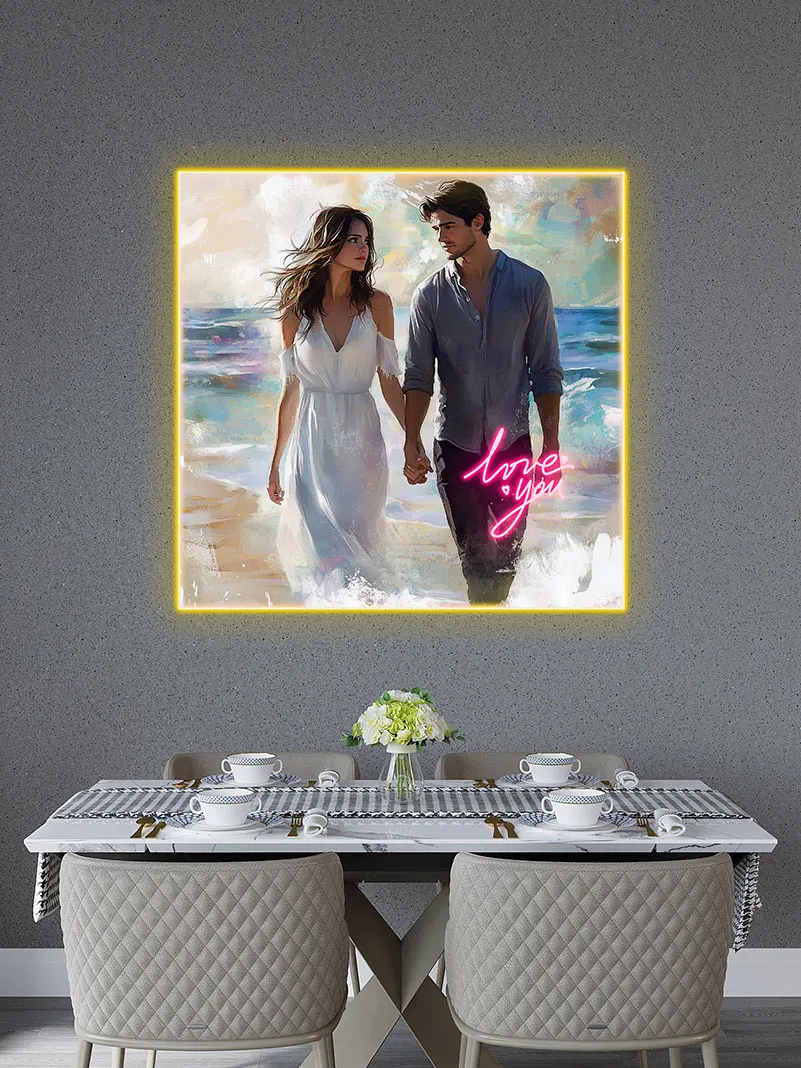 Lovers Walking On The Beach Acrylic Custom Neon Sign, Personalized LED Neon Sign Light, Perfect Gift Neon Light For Home Decor