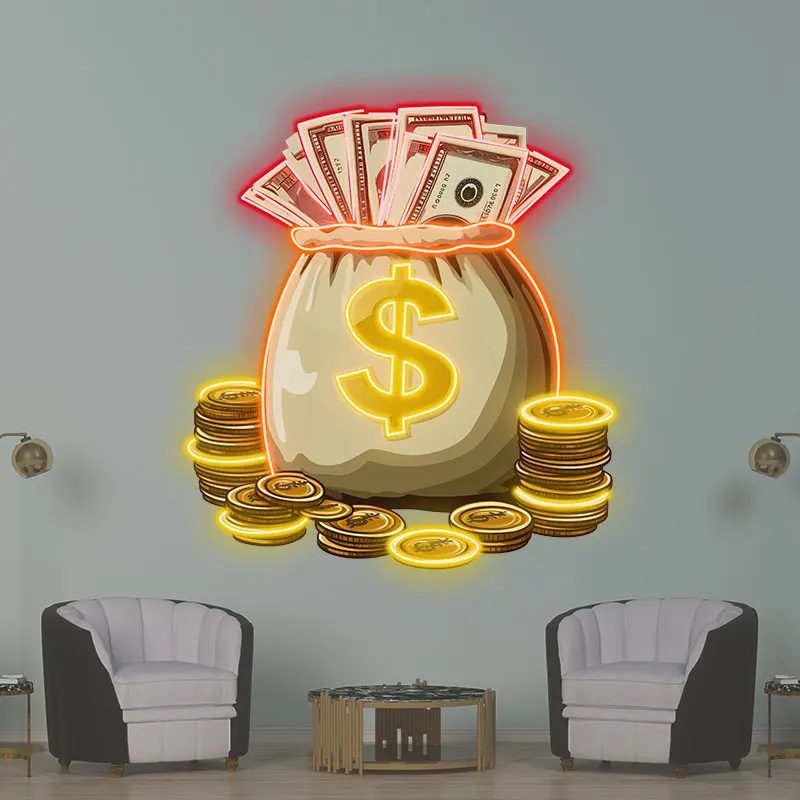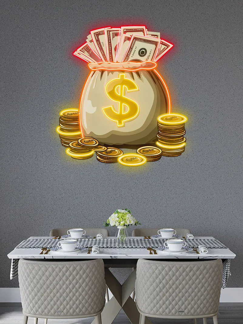 Money And Gold Coins Bag Neon Sign, Creative Wall Hanging Neon Light, Perfect Gift Good Luck Decor Light