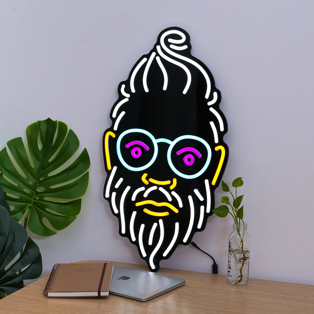 Old man neon sign with black backboard, led flexible neon sign, wall mounted neon sign