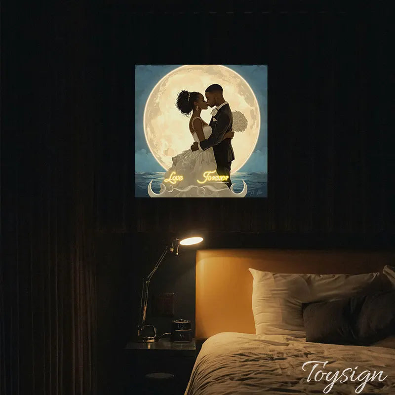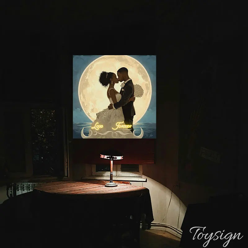 Romantic Wedding Neon Light - Moonlit Couple LED Sign, Perfect for Weddings, Anniversaries, and Home Decor, Love Forever Theme